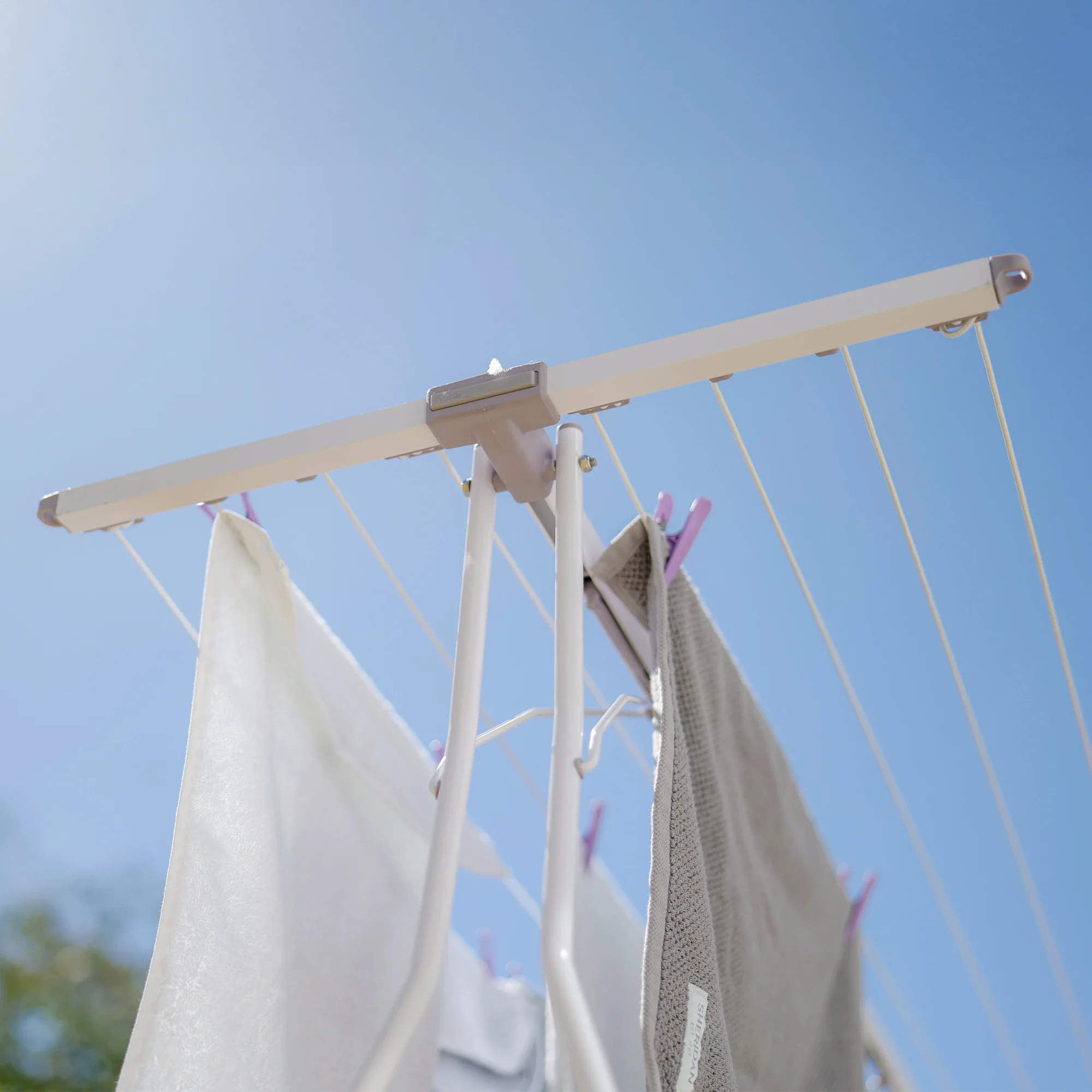 Introducing the Classic Easy 8 Handy Line® – a clothesline designed with accessibility in mind, catering specifically to those with mobility challenges. Crafted with lightweight, powder-coated aluminum and featuring stainless-steel fixings for weatherproof, anti-rust durability, the Easy 8 ensures ease of use. Ultra-lightweight at just 2.8kg, it provides 11.5m of drying space and comes fully assembled, effortlessly accommodating up to two full wash loads.