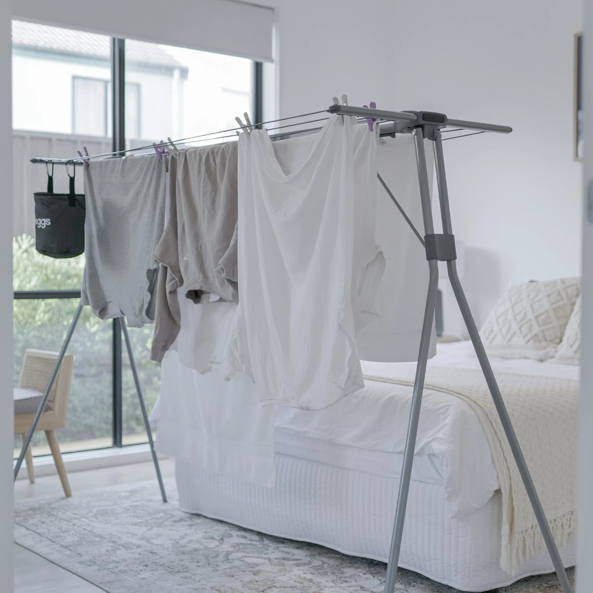 Introducing the Deluxe 8 Handy Line® – your premium solution for queen/double size sheets. Crafted with exceptional quality, this clothesline boasts powder-coated aluminum for lightweight durability and stainless-steel fixings for weatherproof and anti-rust performance. Weighing just 3.4 Kg, it’s effortlessly portable, lightweight, and user-friendly for both indoor and outdoor use. Addressing capacity building, falls prevention, and energy savings, it’s the perfect alternative to fixed outdoor lines, offering a practical 12m of drying space. Fully assembled and capable of holding at least two full wash loads, all in a stylish gunmetal grey finish.