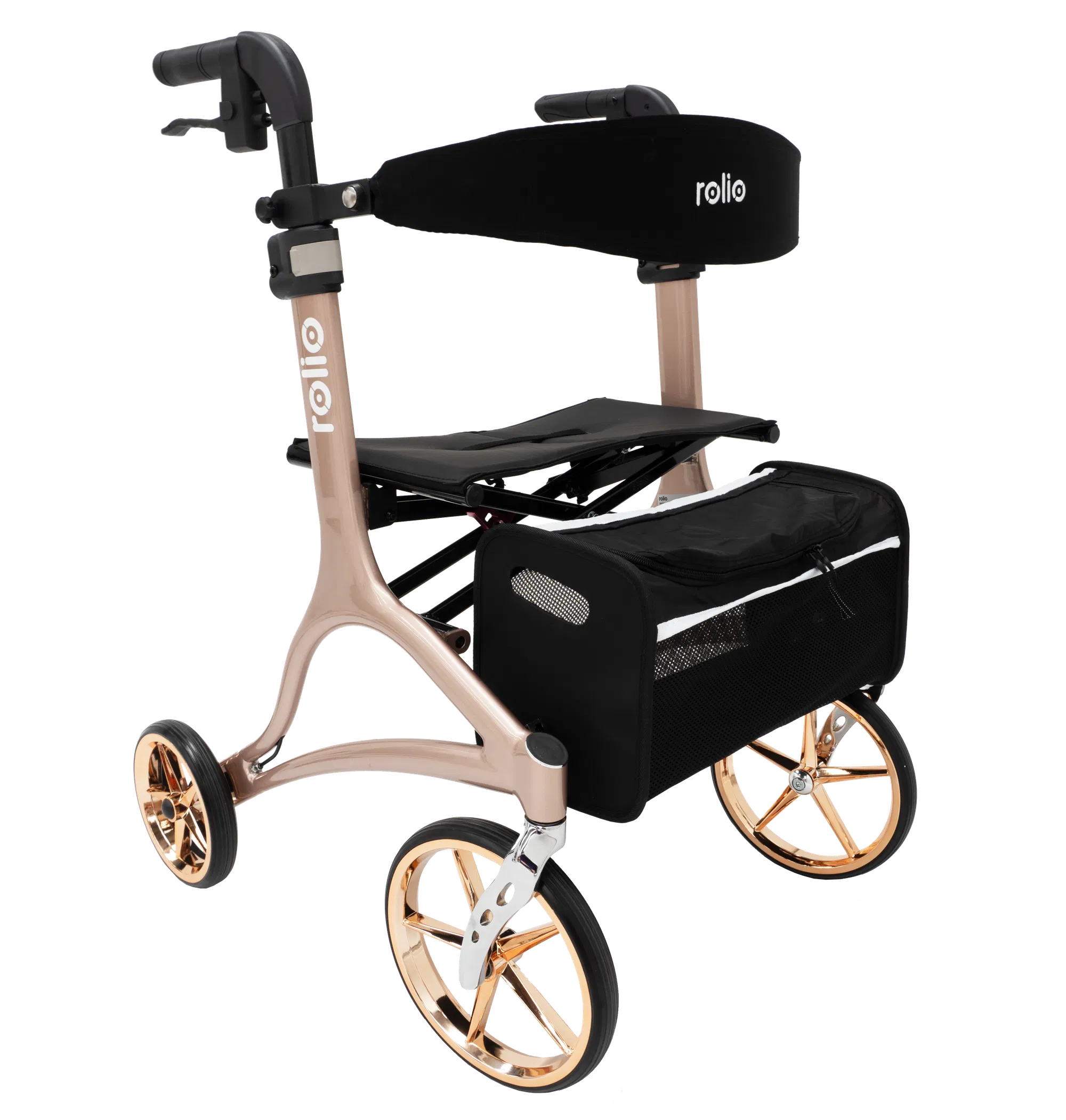 130854 Rolio Aluminium Side Fold Seat Walker Rose Gold 460mm 560mm 225mm 530mm 853mm 250mm/10” 200mm/8” 7.67kg 136kg